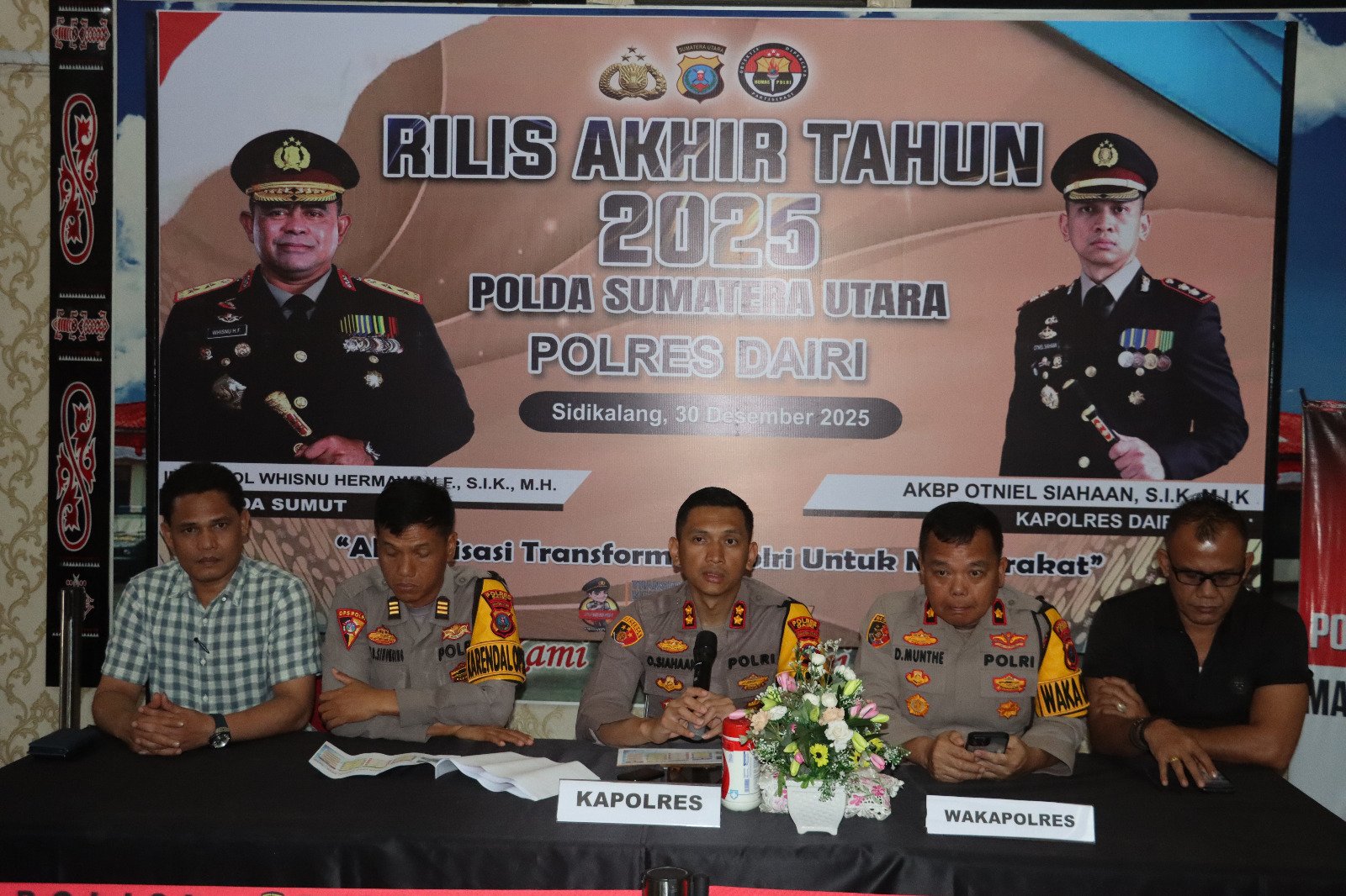 Topiksumut.id, DAIRI – Polres Dairi menggelar konferensi pers dalam refleksi akhir tahun 2025 yang diselenggarakan di Aula Mapolres Dairi, Selasa (30/12/2025).