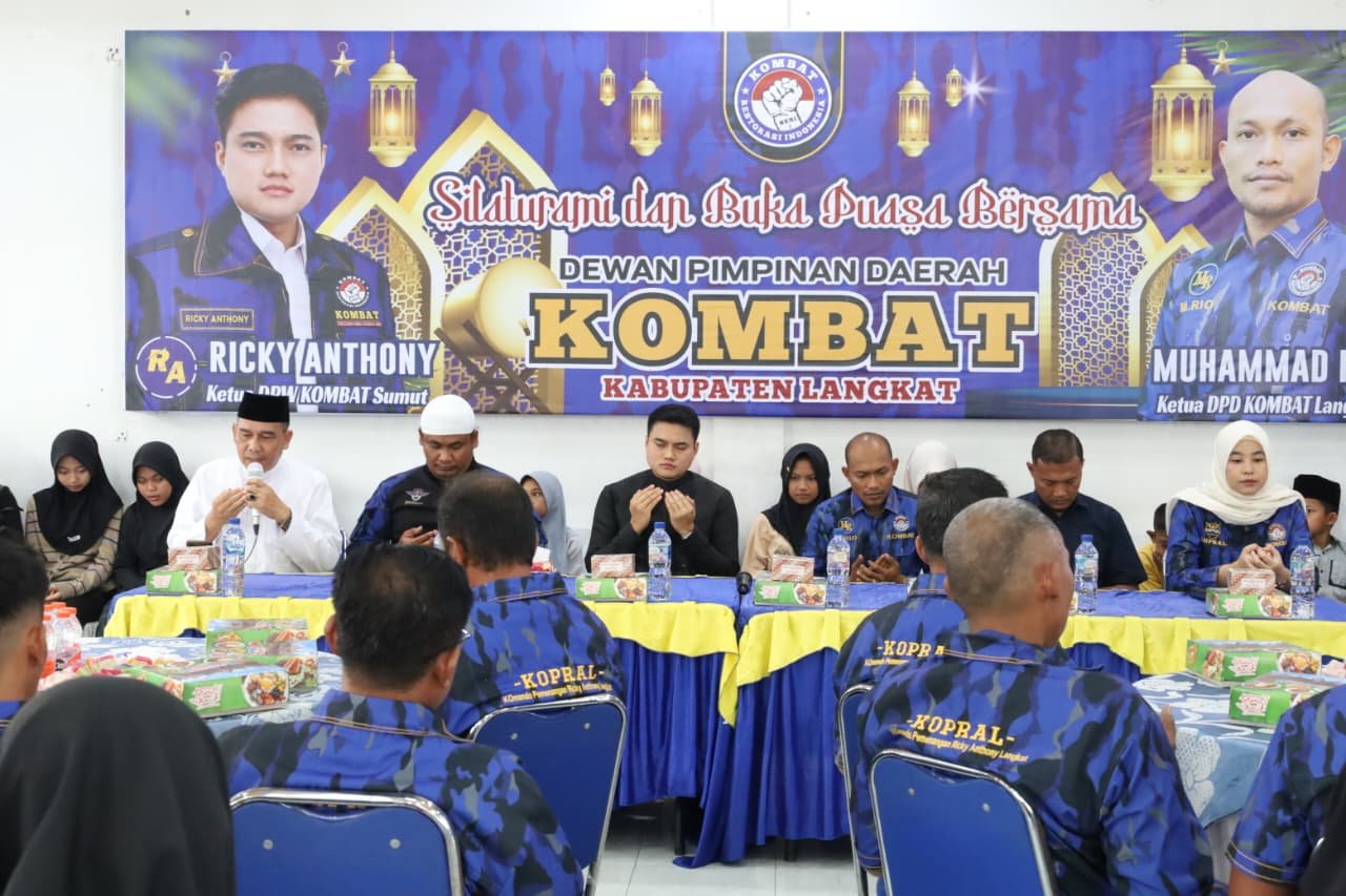 Topiksumut.id, LANGKAT – Dewan Pimpinan Daerah Komando Bela Tanah Air (DPD KOMBAT) Langkat menggelar buka puasa bersama, Senin (16/3/2026) sore di Stabat.
