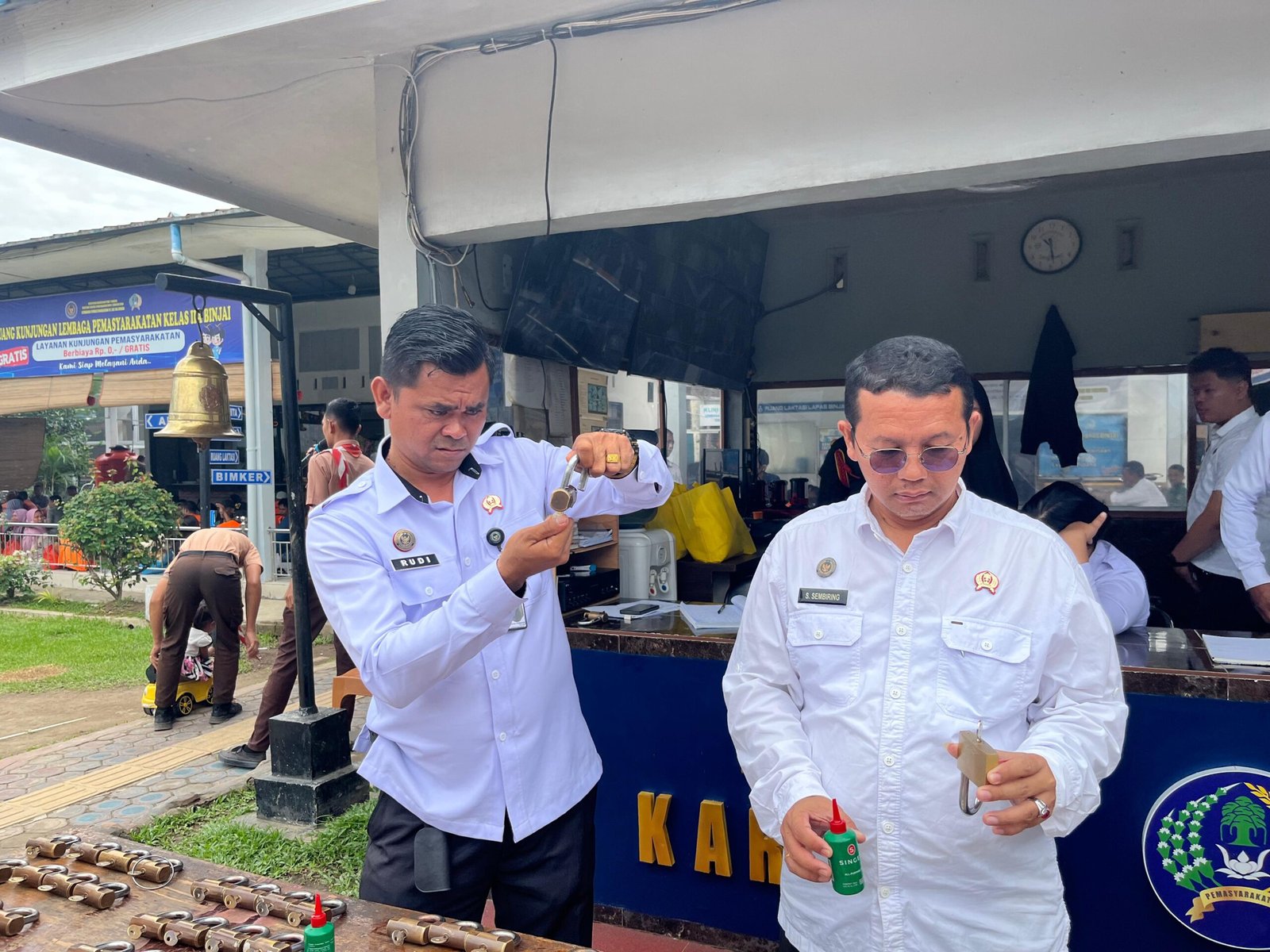 Kepala KPLP Lapas Kelas IIA Binjai, Rudi Sembiring, bersama Kasi ADM dan Kamtib, Serikat Sembiring, mengecek gembok seluruh area, Kamis (11/12/2025).