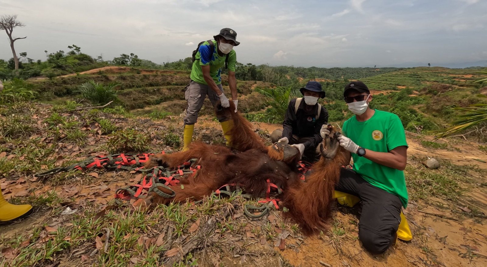 Upaya evakuasi orangutan usia sekitar 25 tahun dilakukan secara kolaboratif dari area perladangan warga di Desa Karya Jadi, Kecamatan Batang Serangan, Kabupaten Langkat, kemudian dipindahkan ke hutan primer kawasan Taman Nasional Gunung Leuser (TNGL).