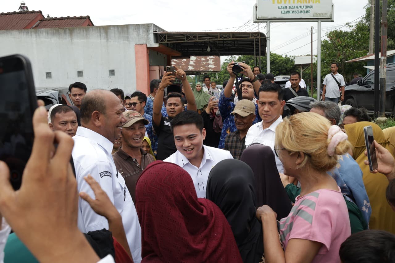 Dua pejabat ini juga meninjau jalan di Kampung Nangka, Kecamatan Secanggang, yang rusak parah.