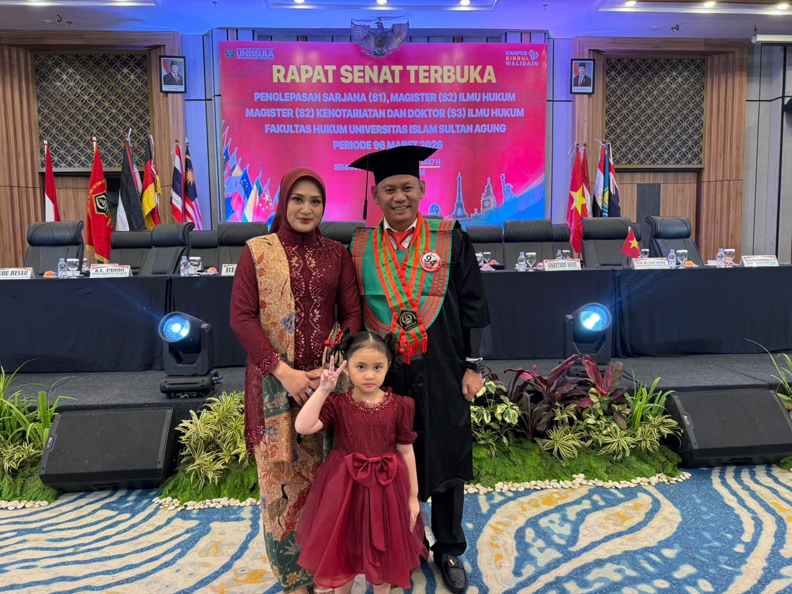 Didampingi istri dan anak tercinta, Wahyudi Rahman resmi menyandang gelar doktor didepan namanya. Suasana wisuda itu pun tampak haru sekaligus bahagia.