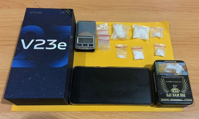 Adapun barang bukti (BB) yang berhasil disita dari kedua pelaku antara lain 6 (enam) paket narkotika jenis sabu-sabu dengan berat bruto total 12,61 gram, 1 (satu) unit timbangan digital, 1 (satu) buah kaleng rokok, 1 (satu) buah kotak HP merek Vivo, 6 (enam) buah plastik klip kosong dan 1 (satu) unit HP merek Samsung.