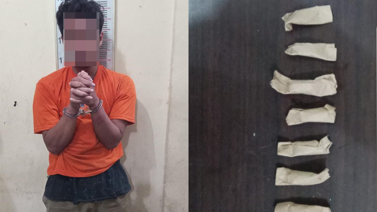 “Dari hasil penggeledahan badan, personel menemukan 10 bungkus kertas coklat berisi ganja dengan berat bruto 16,90 gram, serta satu bungkus rokok yang digunakan untuk menyimpan barang haram itu,” kata Rudy.