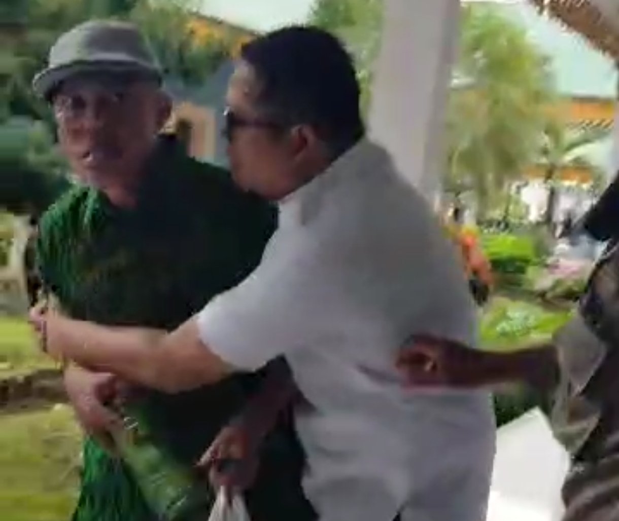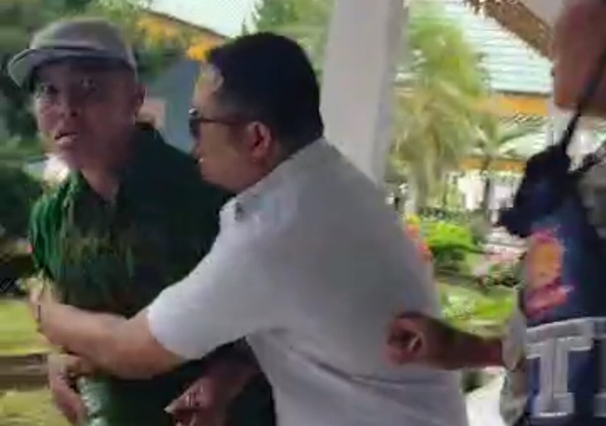 Pasalnya seorang pria mengenakan kemeja batik, memakai topi serta dengan raut wajah yang penuh emosi dan amarah, datang ke Kantor Bupati Langkat dengan membawa botol plastik berisikan bahan bakar minyak (BBM) atau bensin.