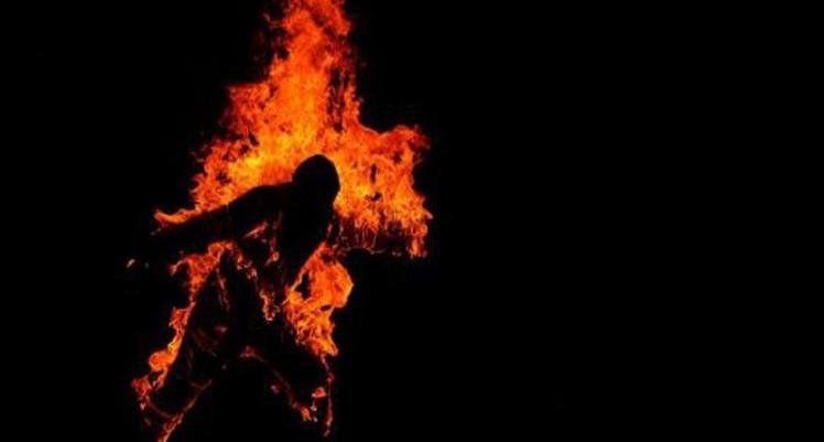 Usai disiram bensin dan dibakar, Peri langsung membuka baju, lalu melarikan diri memadamkan api.