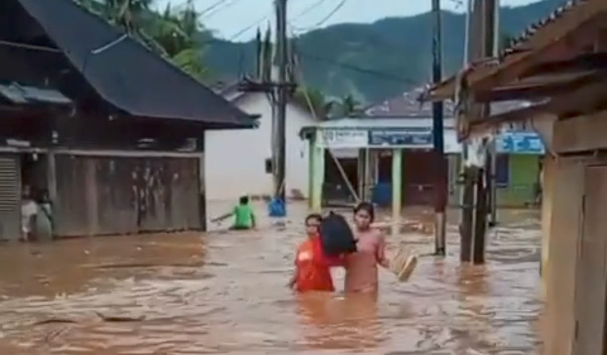 Hujan deras terjadi sekitar dua jam membuat air meluap hingga masuk ke ratusan rumah warga, bahkan rumah ibadah dan sekolah juga kembali ikut dilanda banjir.